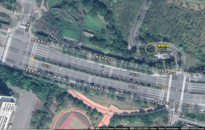 目前的衛星照片如下,這兩株相思樹種植在右上角,小路與中科路(橫向寬闊的馬路)交接處,兩個轉彎點中間直線部分的下方: